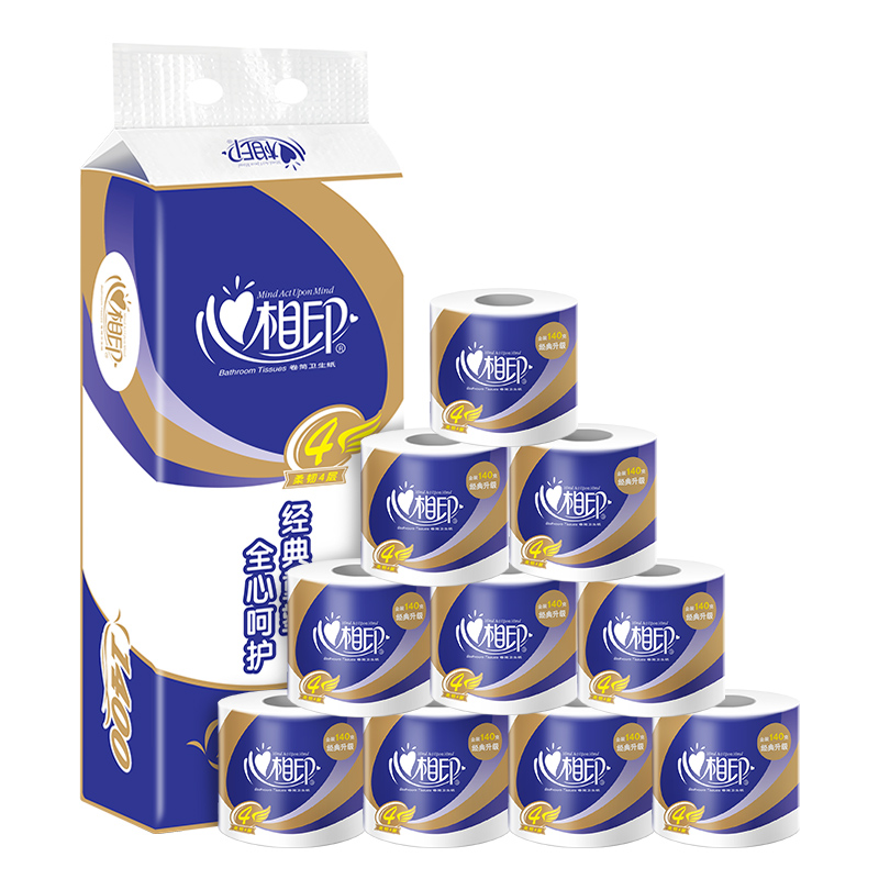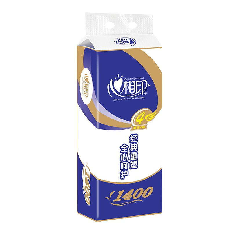 Heart-to-heart printing roll toilet paper 1400g heart soft four-layer core thickened household affordable toilet paper paper towel thick