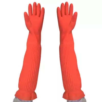 One-piece lengthened thickened latex dishwashing laundry housework waterproof cleaning rubber gloves 56cm wear-resistant