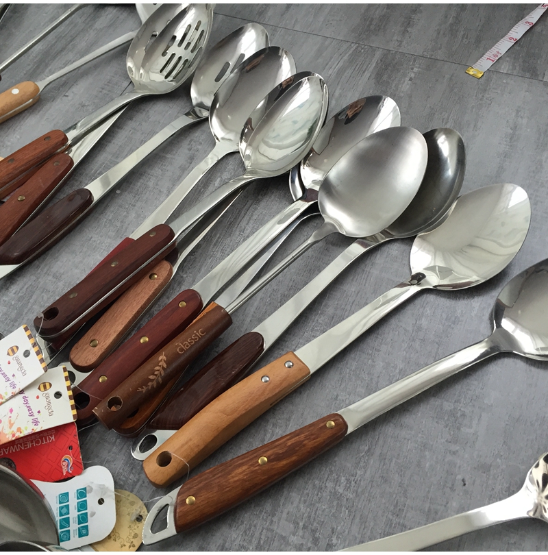 All kinds of meal spoons, tablespoons, rice spoons, spatula, colander tableware collection