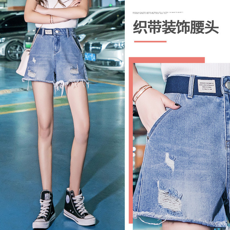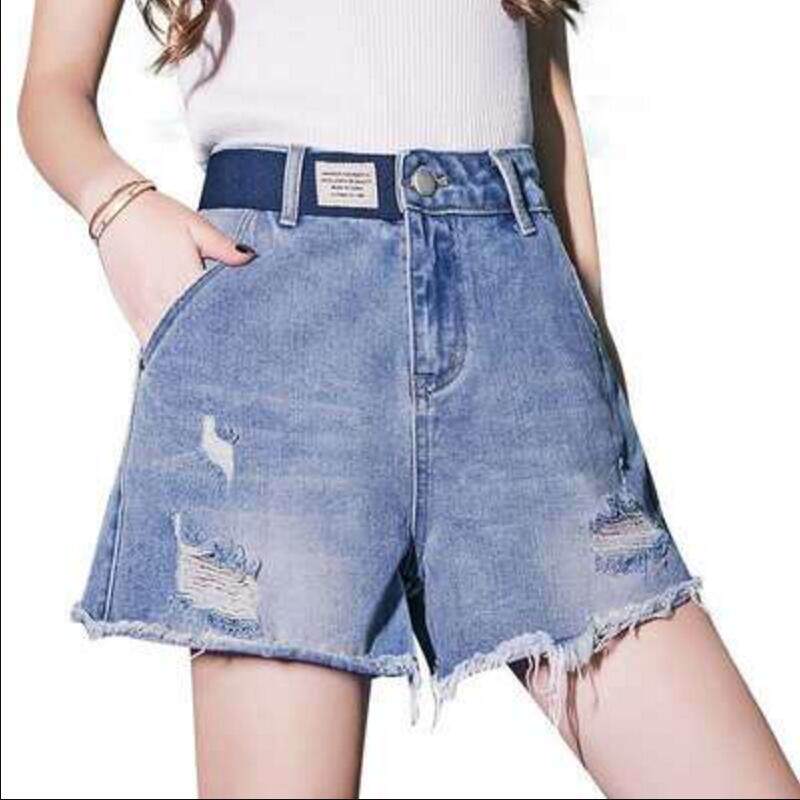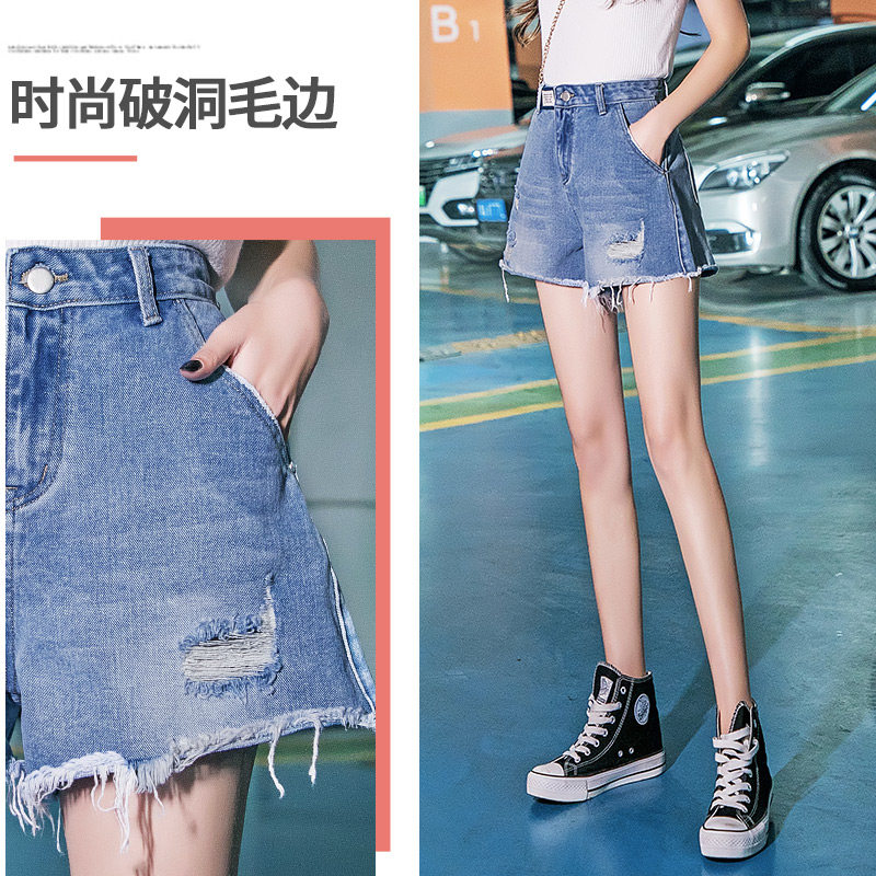 Korea 2022 new high-waisted denim shorts women's spring and summer loose and thin ripped hole A-line large size wide-leg hot pants