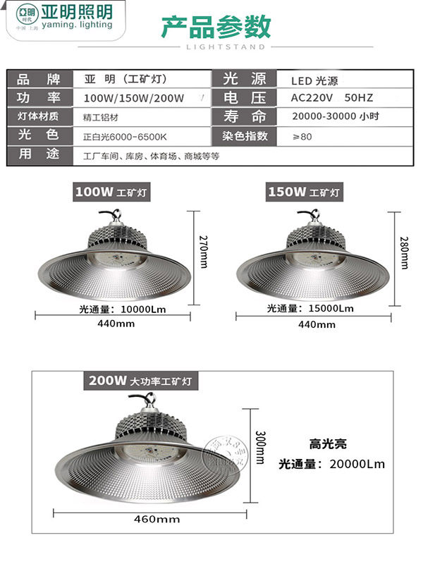 Yamin LED Industrial Safety Lamp Fin Factory Warehouse 100w High Power Super Bright Industrial Pendant Lampshade Workshop Floodlight