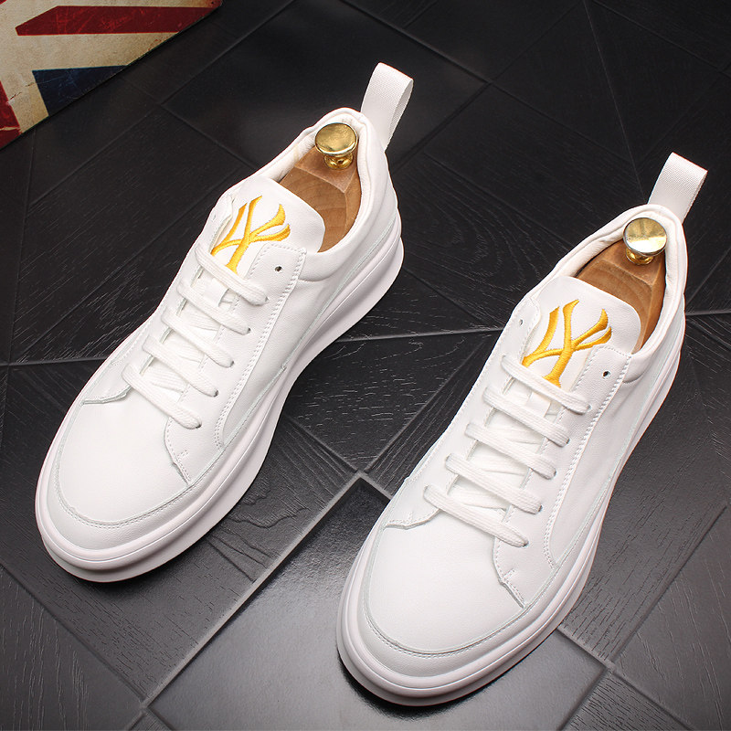 Hong Kong trendy brand small white shoes men's leather trend all-match 2022 spring new trendy shoes thick-soled heightened casual sneakers