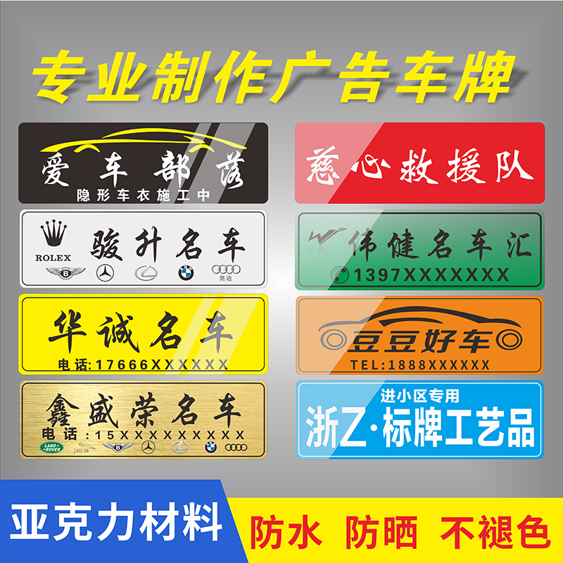 Electric four-wheeler decorative license plate acrylic plastic aluminum plate front billboard car line customized logo