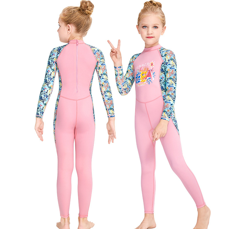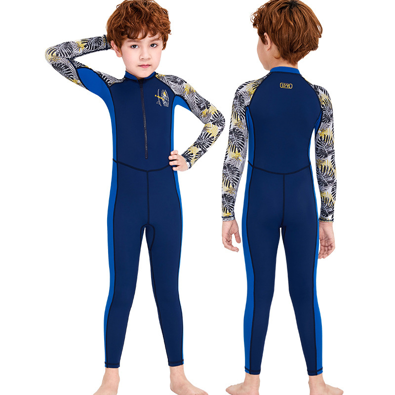 Children's swimsuit sun protection one-piece girl medium-sized girl boy fast dry long sleeve split student swimming school diving suit