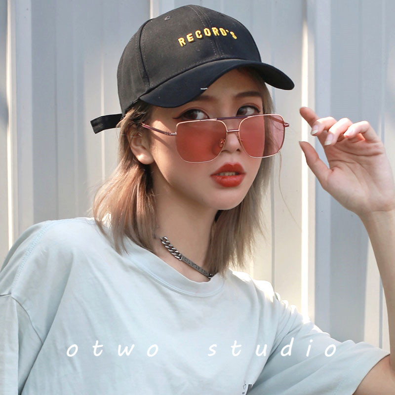 Pink Sunglasses Large Face Slim Double Beam Tide Square Sunglasses Woman Big Frame Round Face Anti-Ultraviolet Personality Tea Color-Taobao