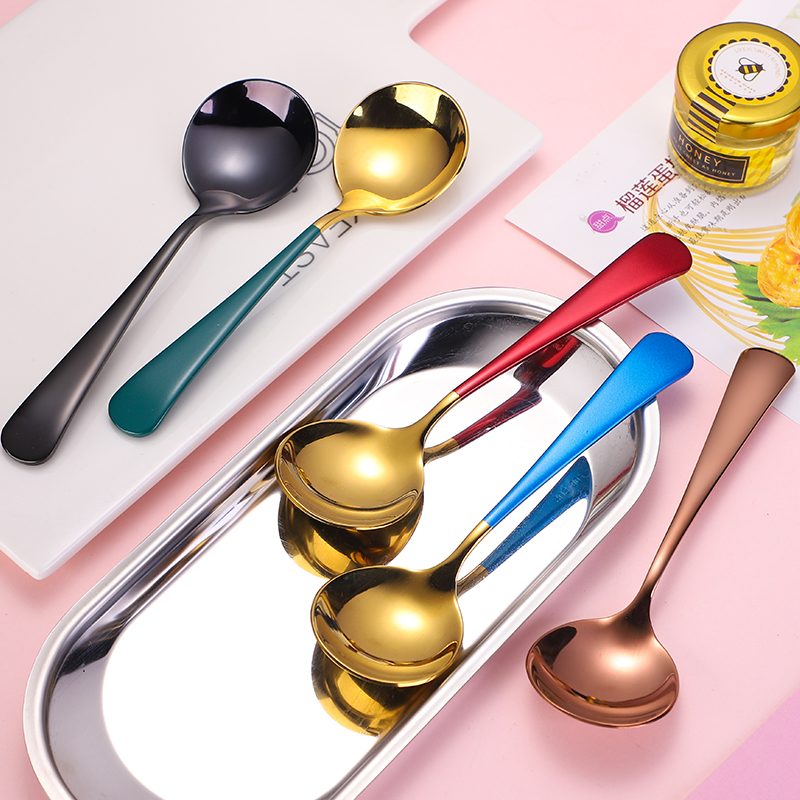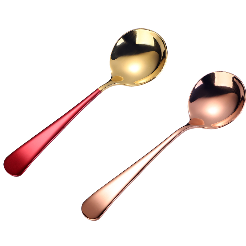 Thick red spoon 304 stainless steel eating and drinking soup spoon creative cute children stir dessert spoon spoon