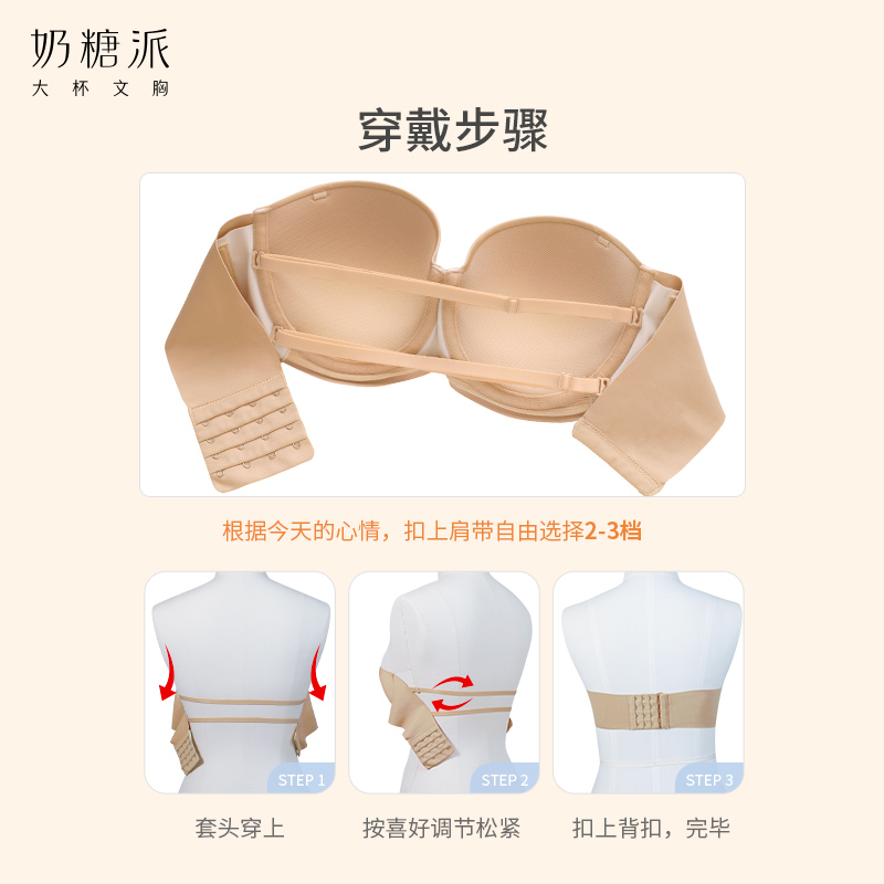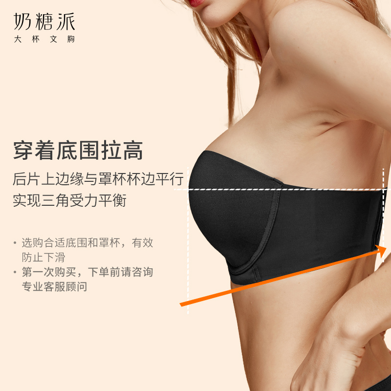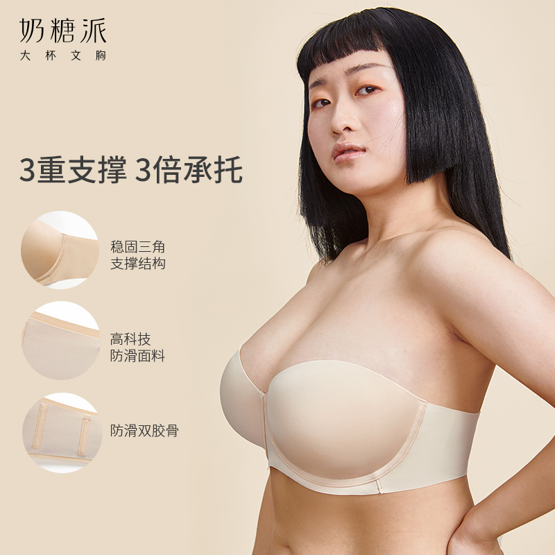 Milk Sugar Pie Beauty Back Underwear Women Summer Large Size Glossy face Half cup No shoulder strap No Scar Underwear Breasted Non-slip Bra