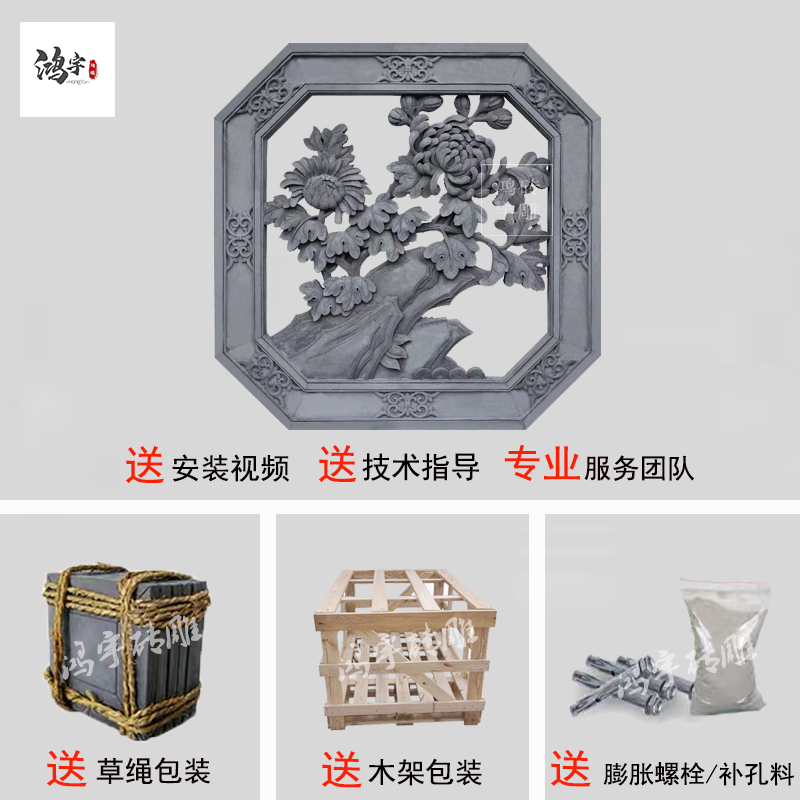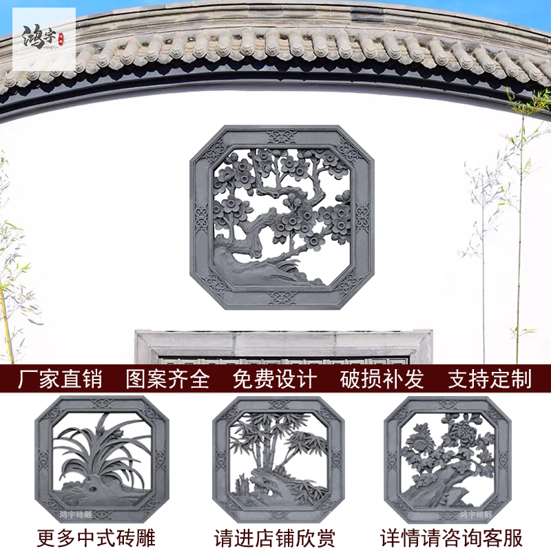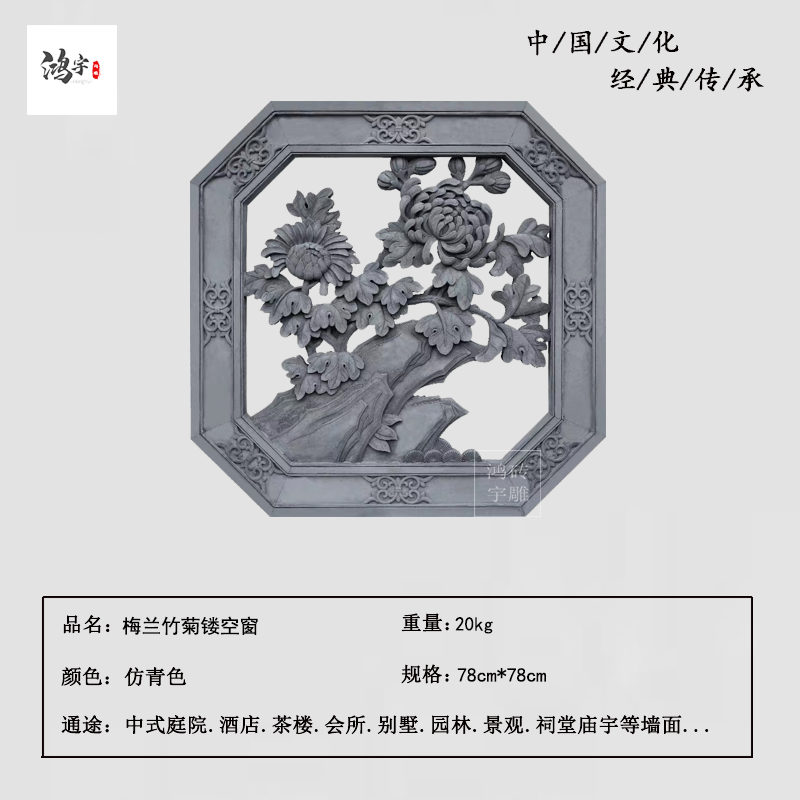 Hongyu Chinese Imitation Ancient Anise Square Hollowed-out Melan Bamboo Chamomile Brick Sculpture Reliever New 80cm Peripheral Wall Courtyard Decoration