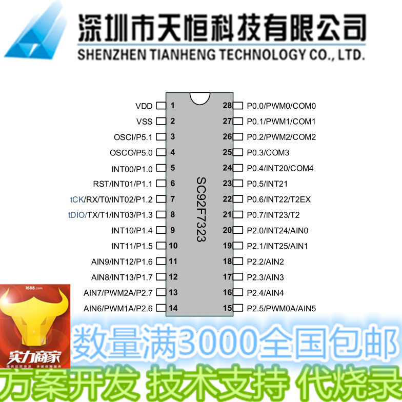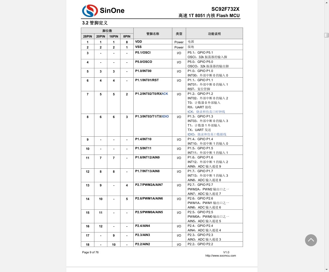Serial port UART single wafer scheme development 8KFLASHROM EEPROM ADCPWM SC92F7323M28U
