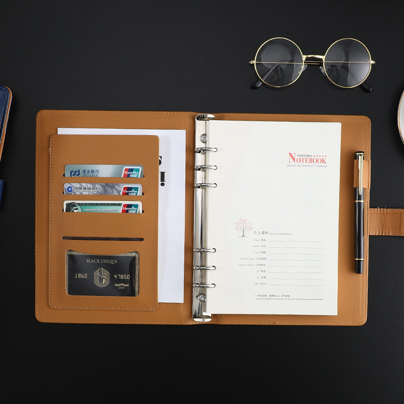 a5 Job Page Close Notebook Simple Business NotepsB5 Meetings RecordsSize leather with 6 rings removable leather page 9 hole diary giftCustomized text logo