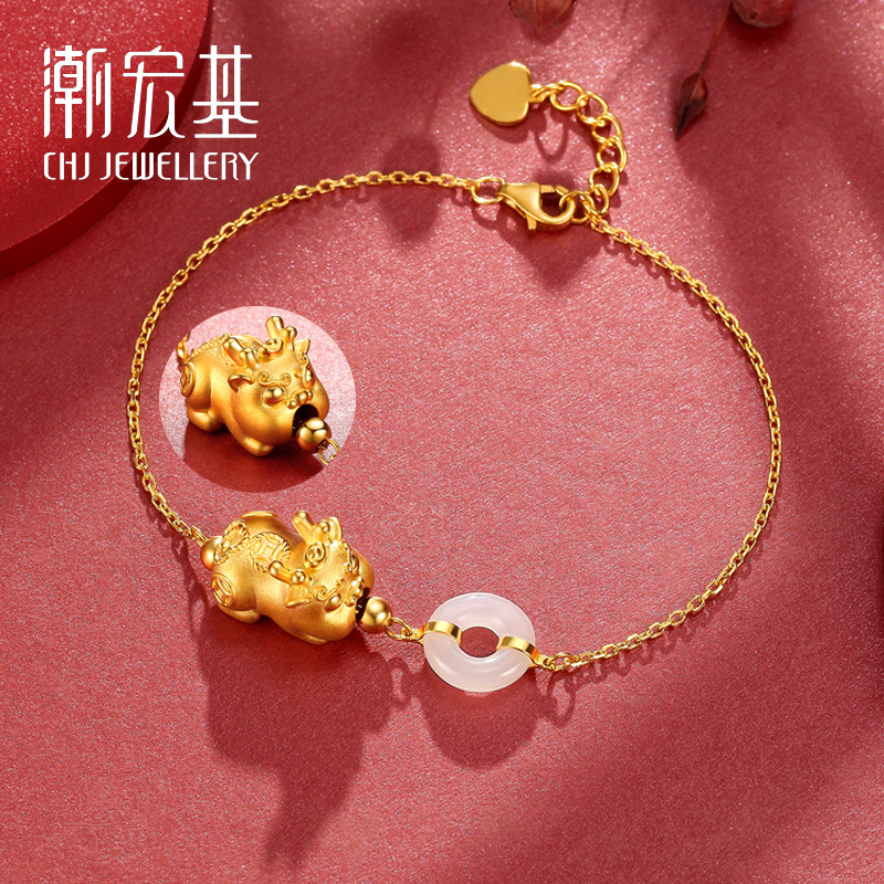 Tidal Hung Kai Ping An buckle 5D Hard gold Gold Medalm Gold Handmade Gold Inlaid Jade Foot Gold and Tian jade Gift to send mom and daughter