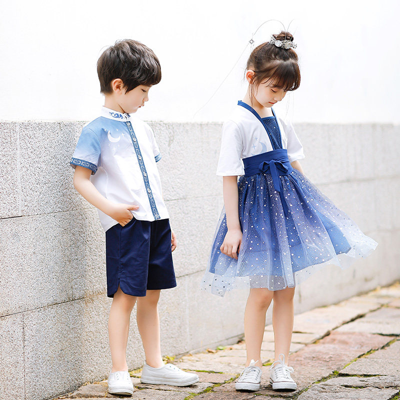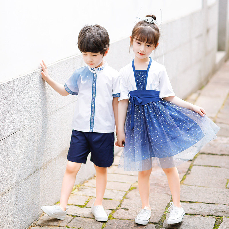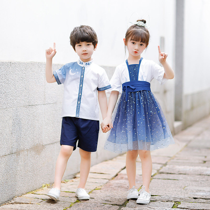 Hanfu Girls Summer Clothing China Wind Jacket Dresses Superfairy Suit Boy Goosewear School Uniform Chinese Style Big Boy Suit Custom
