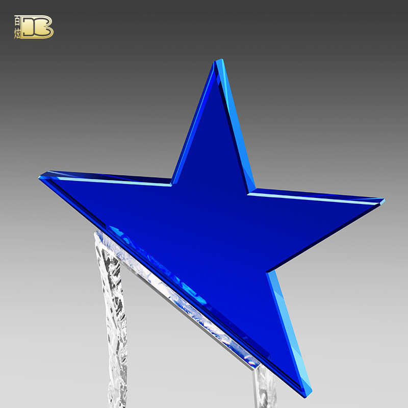 Blue Creative Pentagram Crystal Trophy Custom Medal Set for Patterned Lettering Employees Company Awards-Taobao