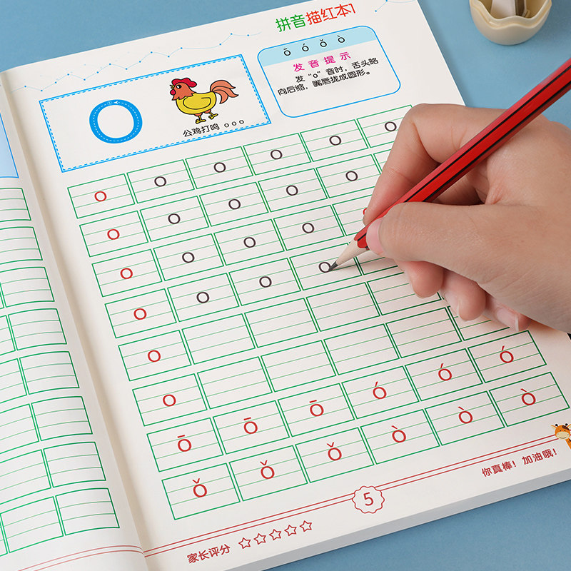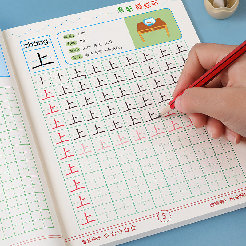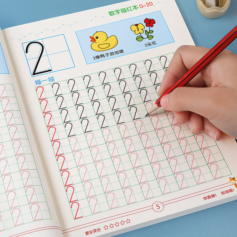 Children's digital depiction red character post preschool practice word book beginner sticker preschool practice word post writing Honda character grid