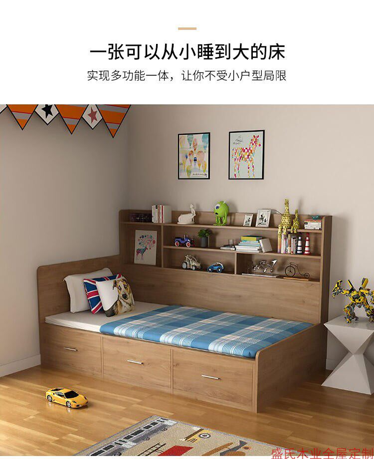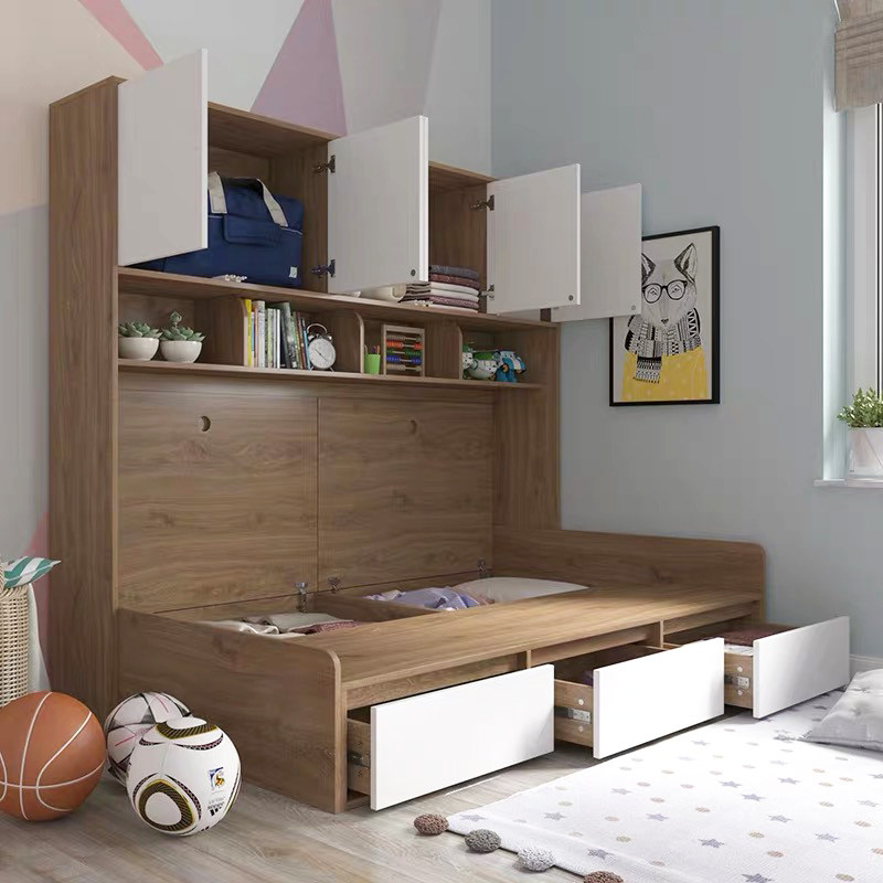 Small apartment storage bed tatami bed bookcase wardrobe integrated bed modern simple high box double storage children's bed