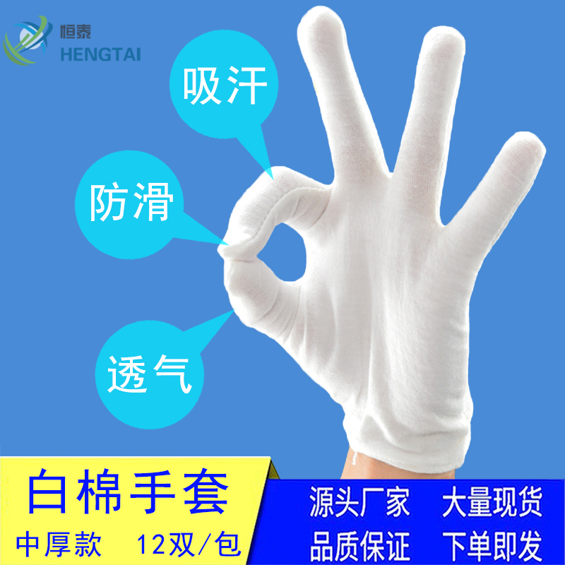 Work etiquette reception Wenwan labor insurance middle-thick jewelry elastic sweat-absorbing non-slip wear-resistant white cotton gloves