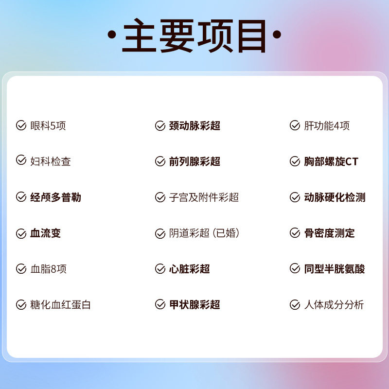 General Examination Uterus Accessories Color Hypergastric Pylori Pylori Antigen Typing Kidney Function Triathlon DR Chest Orthopic Color Super Blood Routine (Five Classification) Fasting Blood Glucose E
