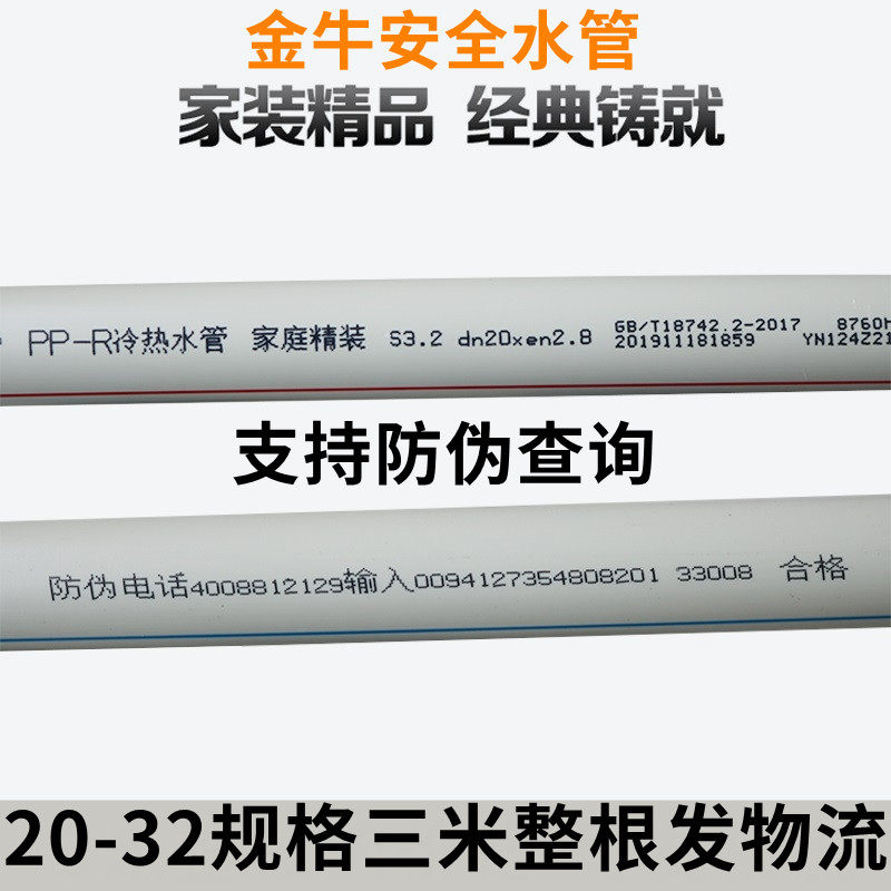 Wuhan Jinniu safety water pipe hot melt home improvement tap water ppr pipe 4 minutes 6 minutes 1 inch 202532 hot and cold water home