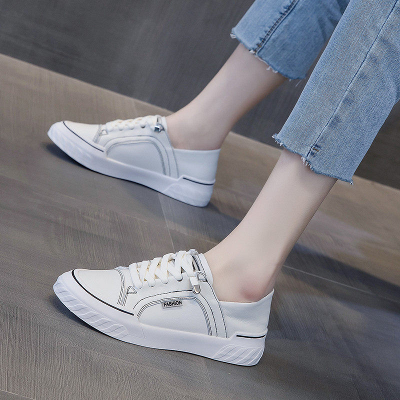 Leather white shoes summer thin women's spring 2022 new all-match mesh breathable slip-on casual sneakers