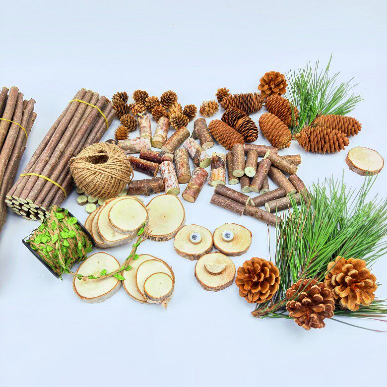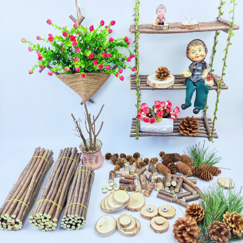 Dry branches creative wall decoration dry flower kindergarten handmade diy ring chuang sen system material pine cone hemp rope wood chips
