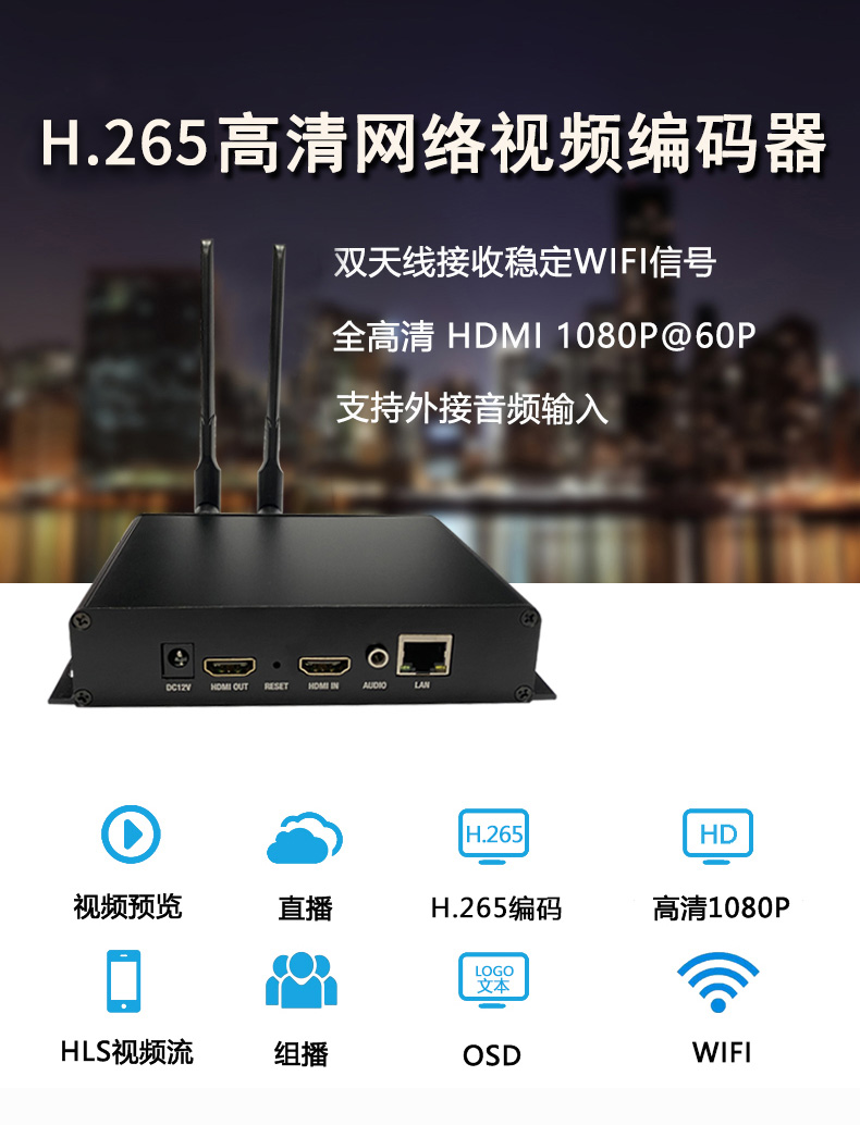 h.265 Video Encoder WIFI Wireless HD Video Stream Pusher Outdoor Live Surveillance Capture Card