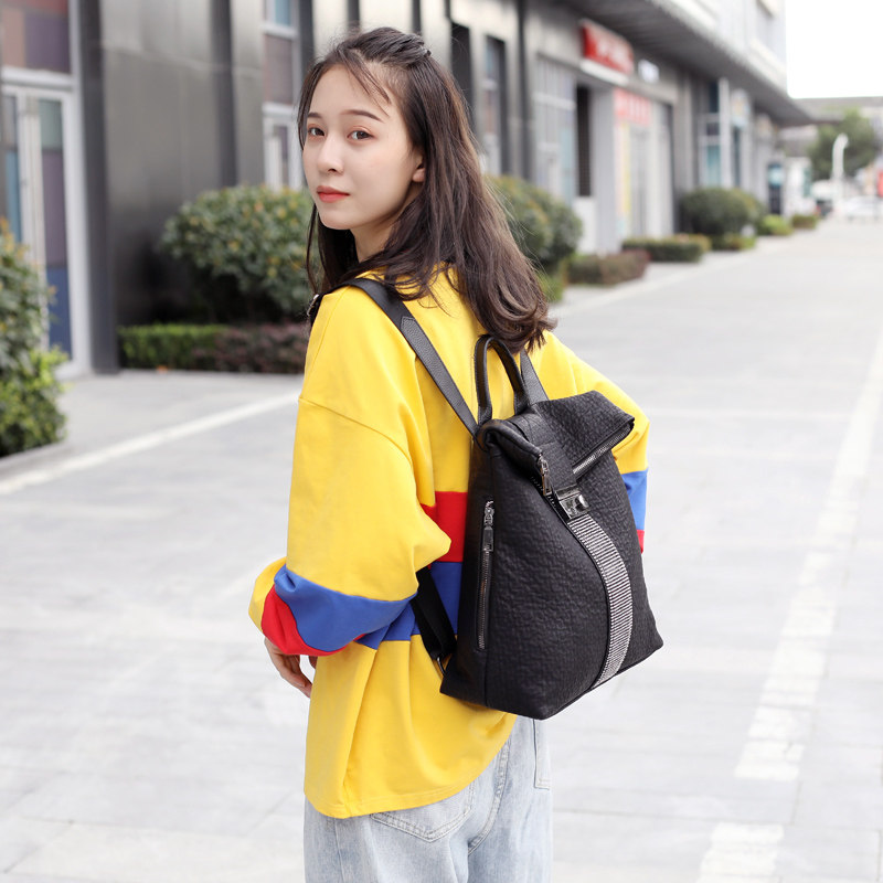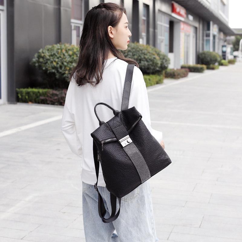Hong Kong large-capacity backpack women's new fashion lock anti-theft soft leather backpack all-match leisure travel bag