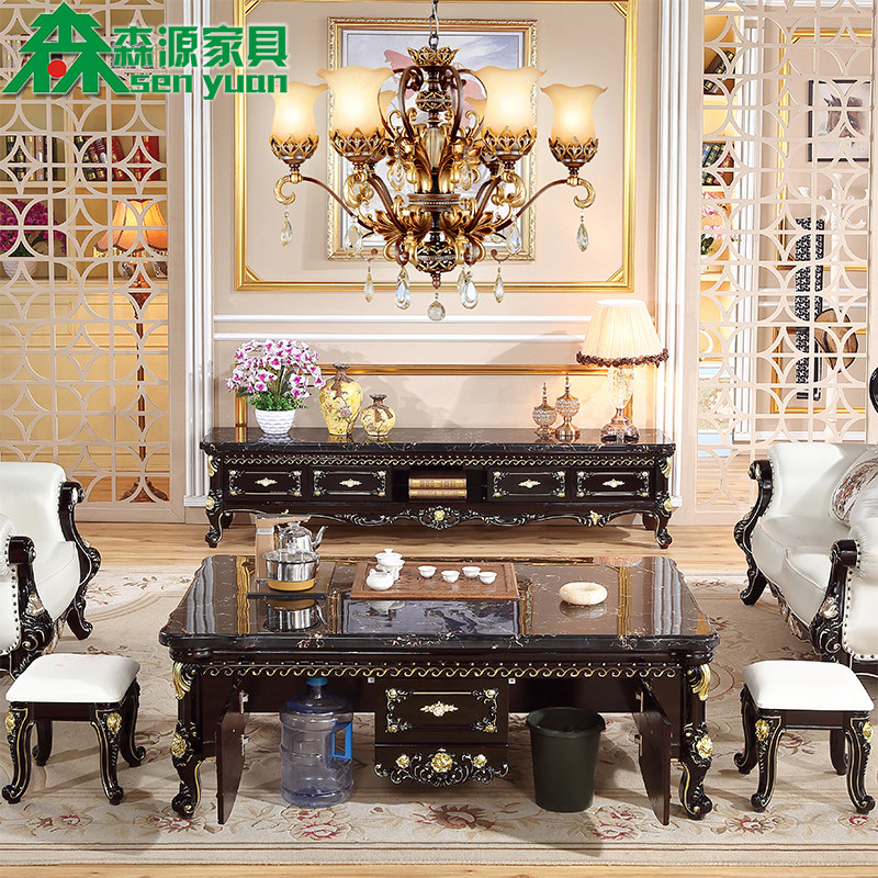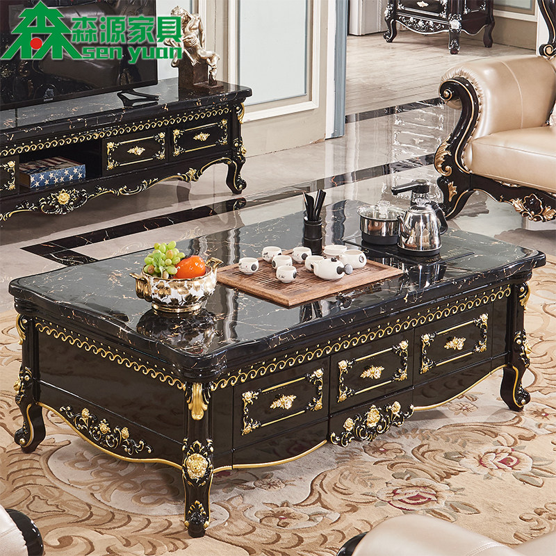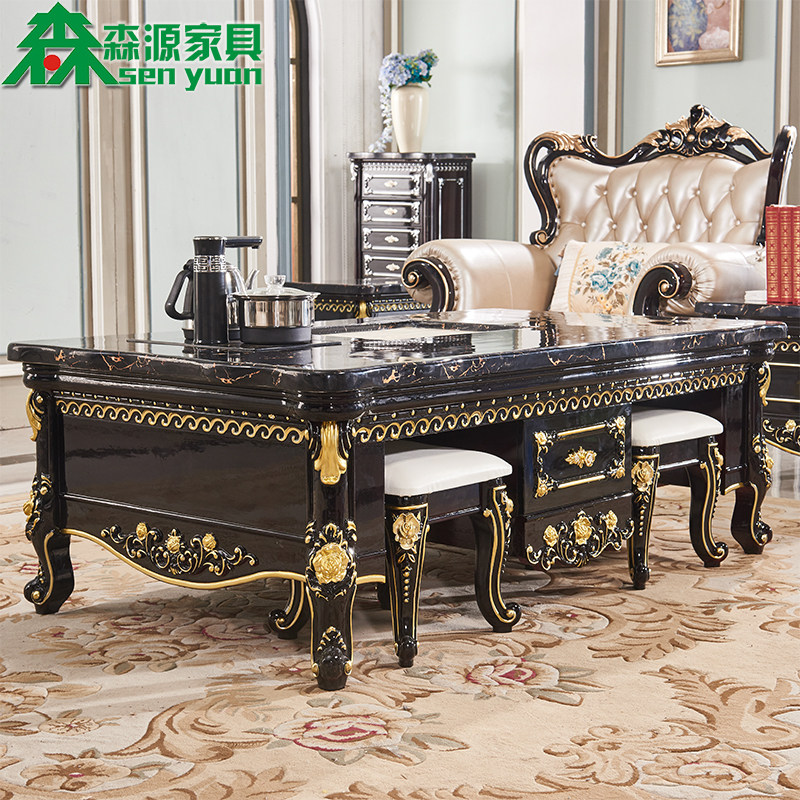 European Marble Kung Fu Coffee Table Multifunctional Simple All Solid Wood Ebony Automatic Water Serving Living Room Tea Table