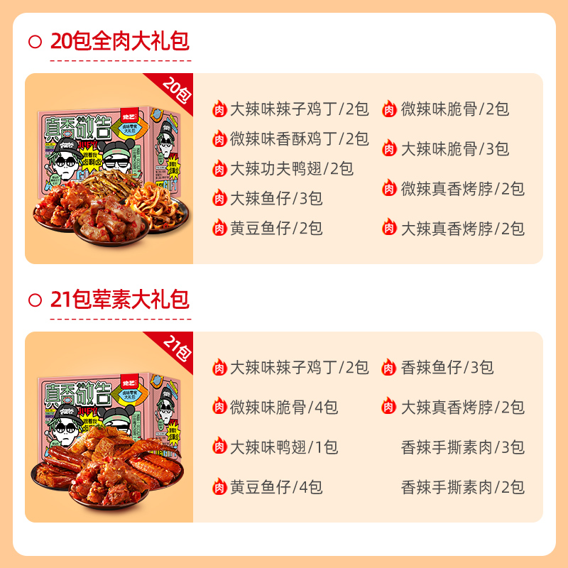 20 packs (add 1 pack total 21 pack) All meat pack 20 pack mixed gift pack 30 pack (bag) pine combination 40 pack spicy (gift box) pine combination 40 pack micro spicy flavor