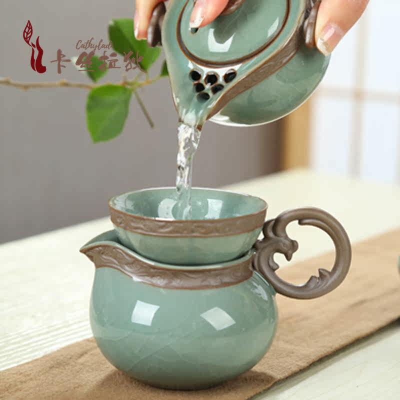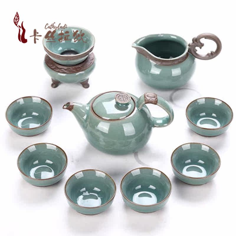 CATHYLADI Ge kiln Kung Fu tea set set ceramic open piece household teapot porcelain gift box gift light luxury