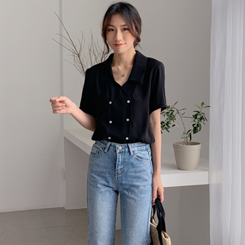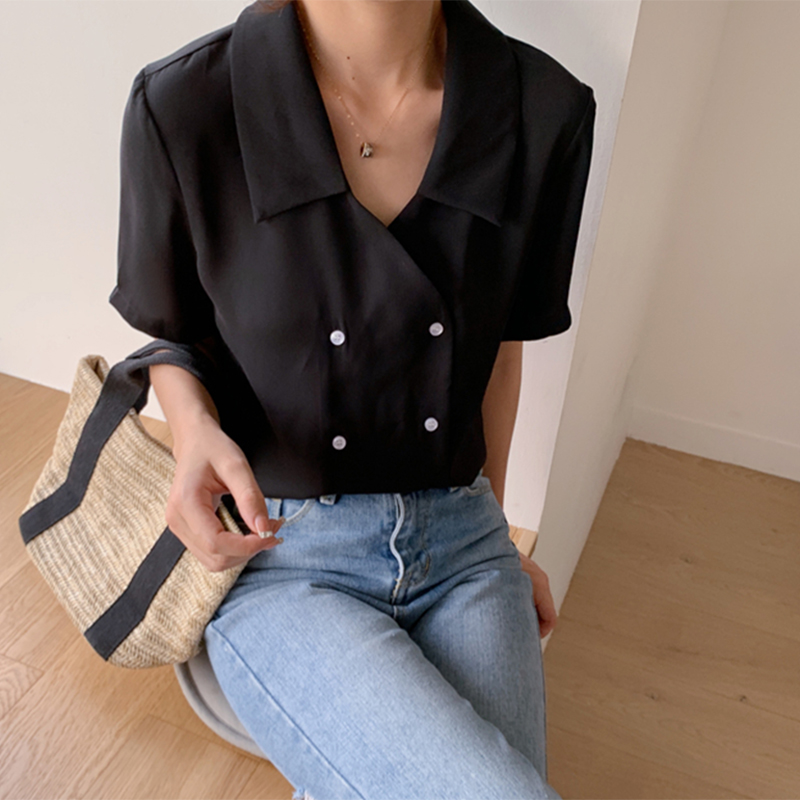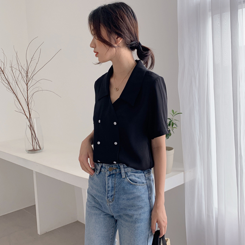2021 new summer short-sleeved chiffon shirt female design sense small-scale Fuguang flavor wild V-neck light cooked coat