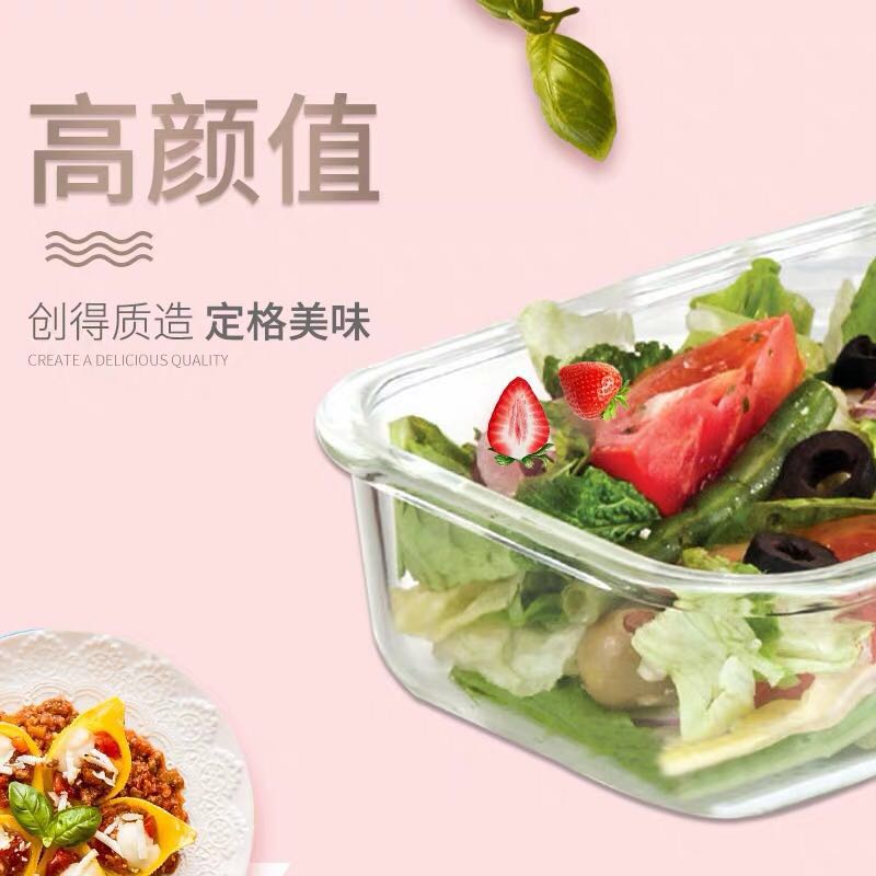 Office workers microwave heating lunch box glass lunch box fresh-keeping box transparent partition sealed fruit box special bowl
