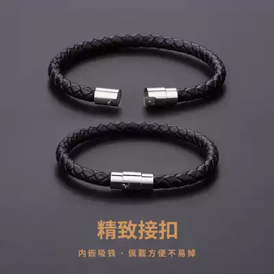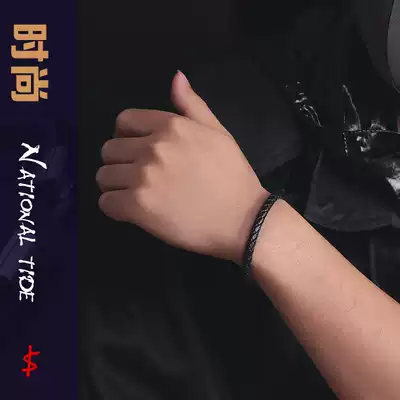 Free lettering fashion real cowskin woven bracelet men's Japanese and Korean hand rope simple titanium steel trendy men's fashion gift