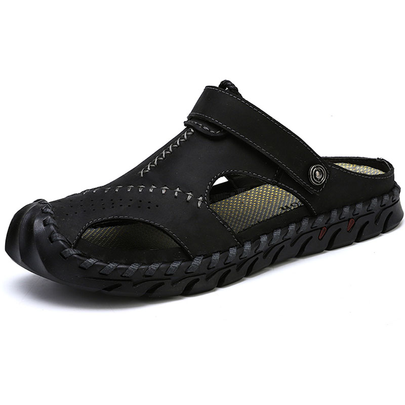 Genuine Leather Sandals Men Trends 2022 Summer New Driving Slippers Fashion Casual Bull Leather Men Beach Cave Shoes