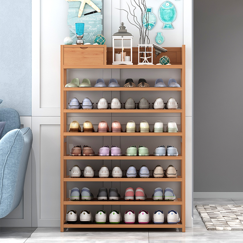 Shoe rack Economical simple household shoe cabinet Multi-layer door Nanzhu large capacity space-saving dormitory shelf