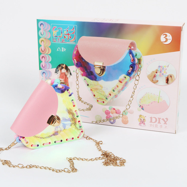 Girl Handcrafted DIY Mirage Princess Package Children's Beads Parquet Bag Obliquely Cross Parent-child Puzzle Toy Material-Taobao
