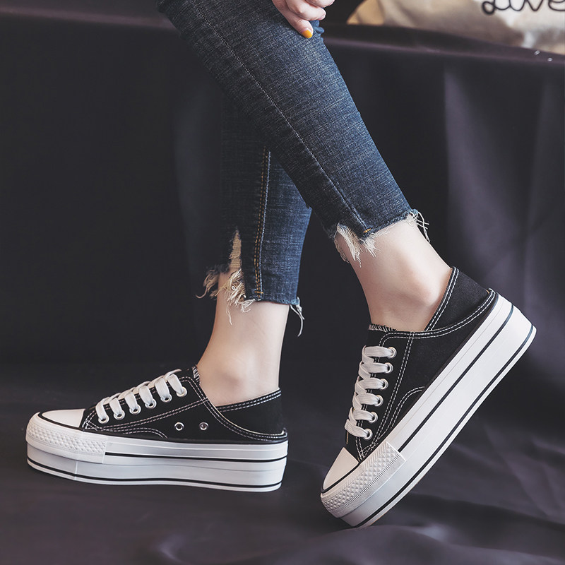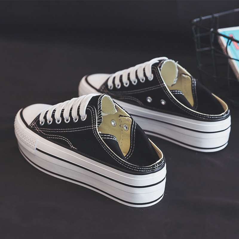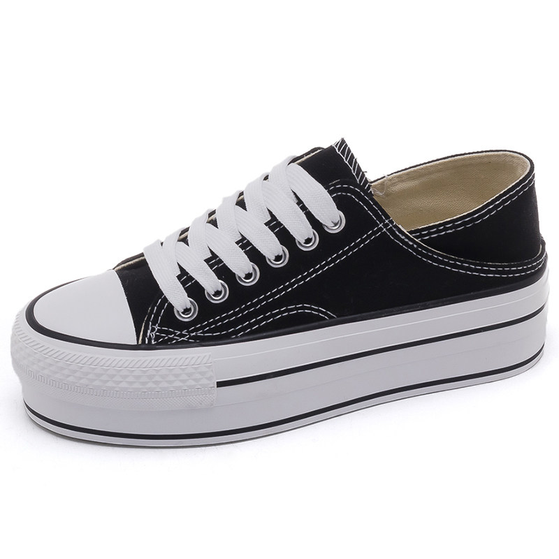 Black canvas shoes in 2022 new autumn pastry thick soles increase cloth shoes small white shoes