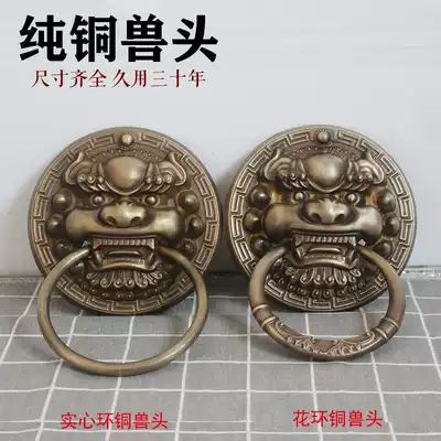 Antique Chinese animal head pure bronze door lion head copper door ring bronze old decoration imitation copper door handle big door handle