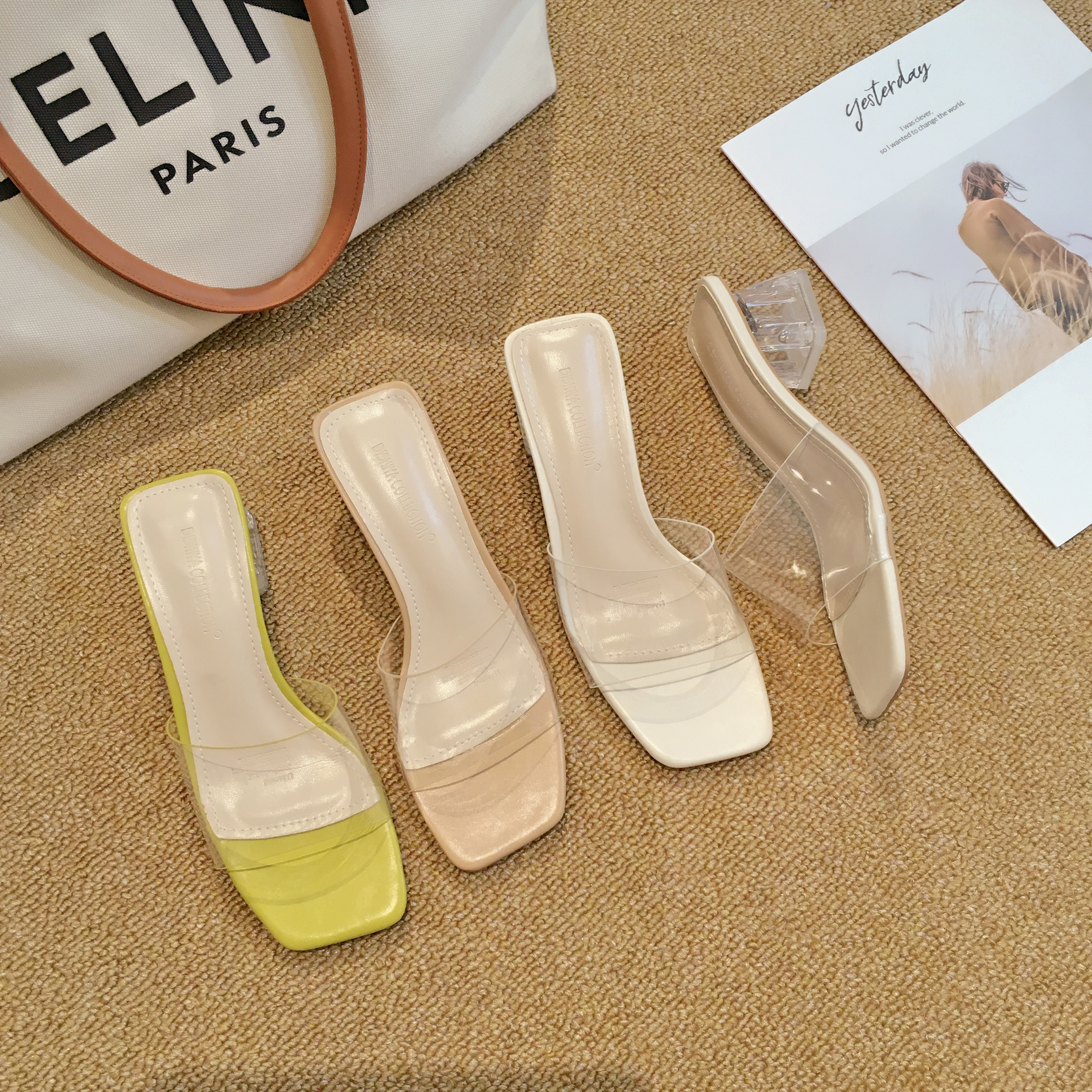 Small fragrance ~ high heel slippers wear 2023 summer women's shoes fashion net red and sandal slippers in tide shoes