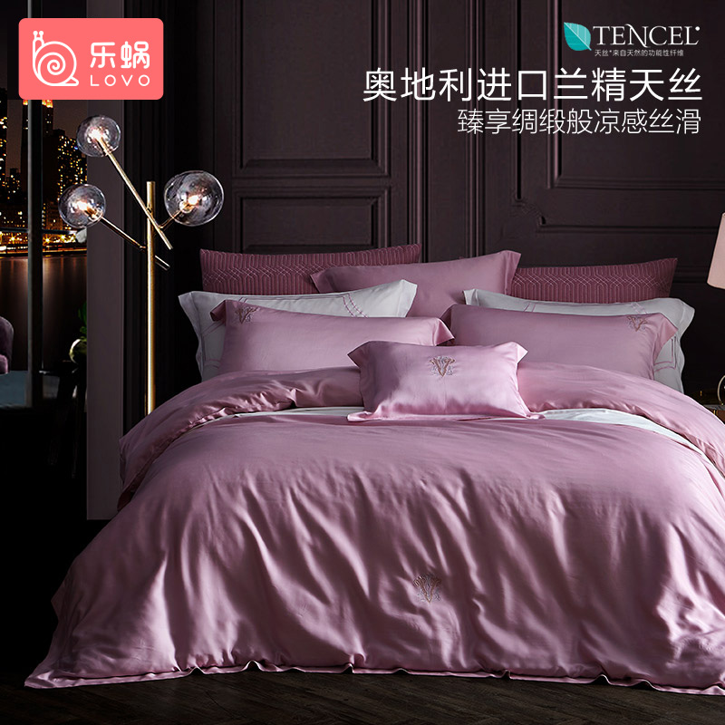 Lechlear LOVO60 Lean Lean Sky Silk Four Pieces Double Face Naked Sleeping Cool Sensation Pure Color Bed Sheet Bedding bedding