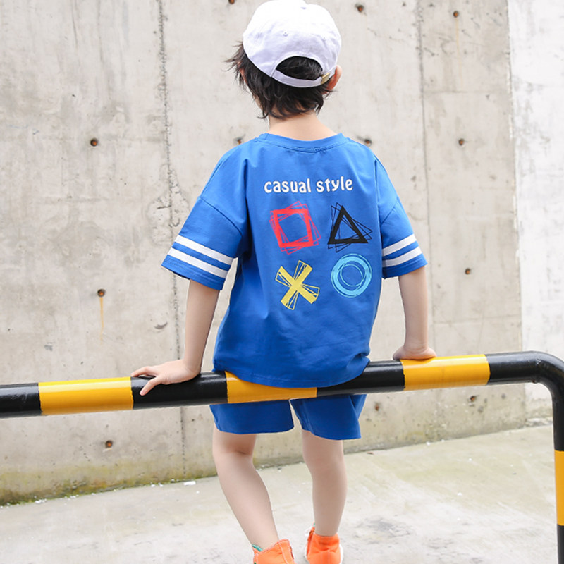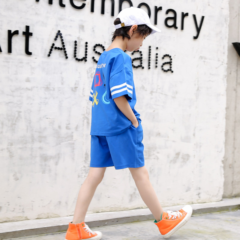 Boys pure cotton suit summer dress 2022 children's leisure relaxed exercise two pieces in the big child's Han - sleeved short - sleeved children's clothing