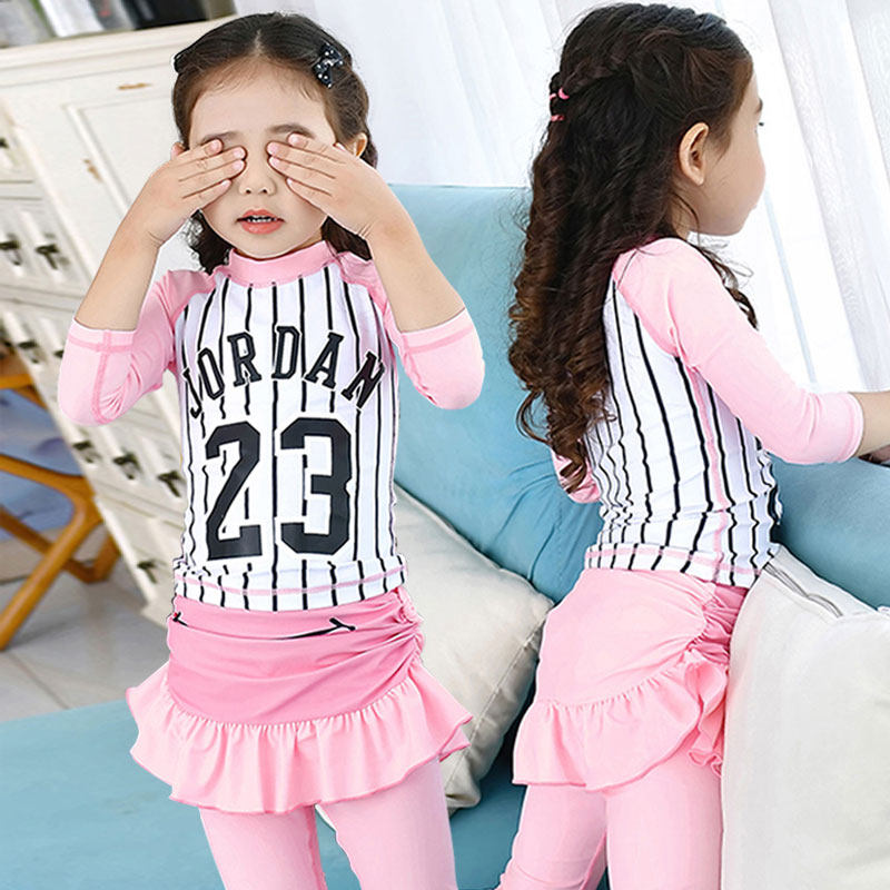 Children's swimsuit girl Princess Korean sunscreen quick-drying split skirt long-sleeved girls big children small children summer cute
