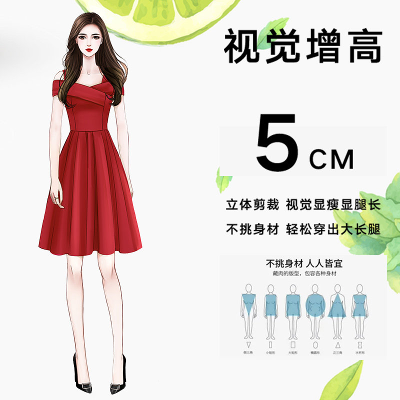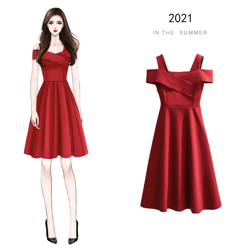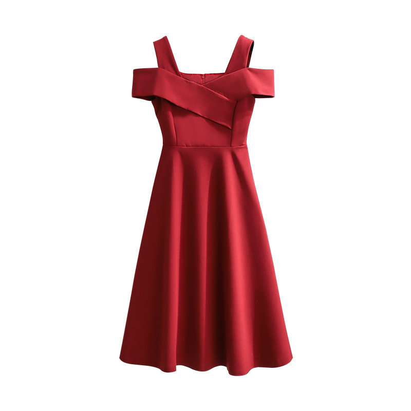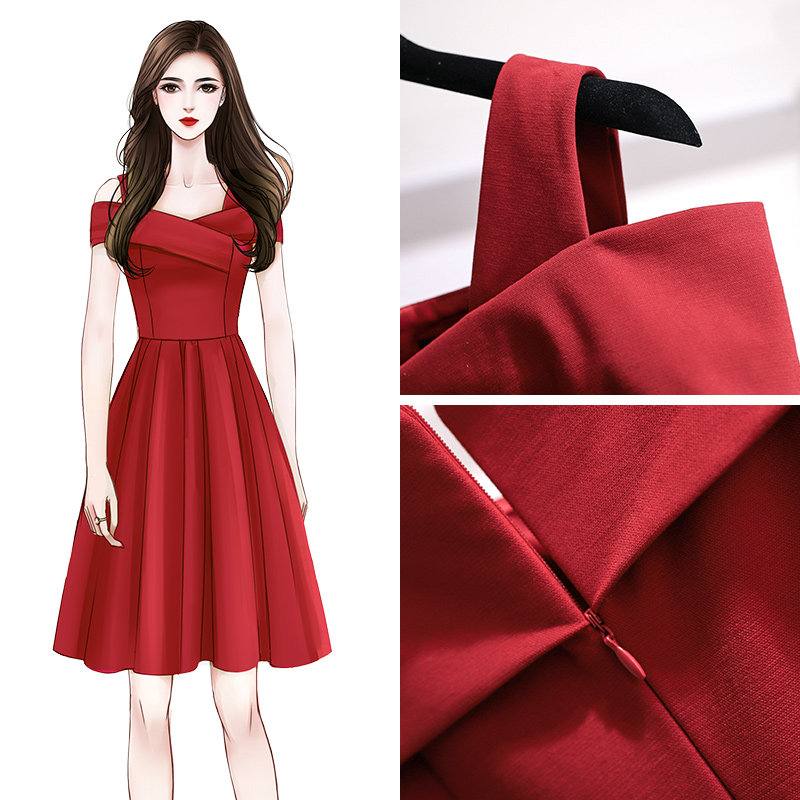 Advanced French style spring and summer new red harness ocean dress with little subtemperament sexy gown dress The dress normally can be worn