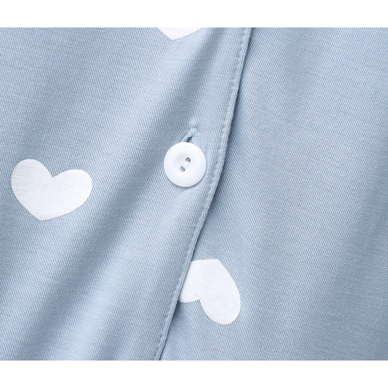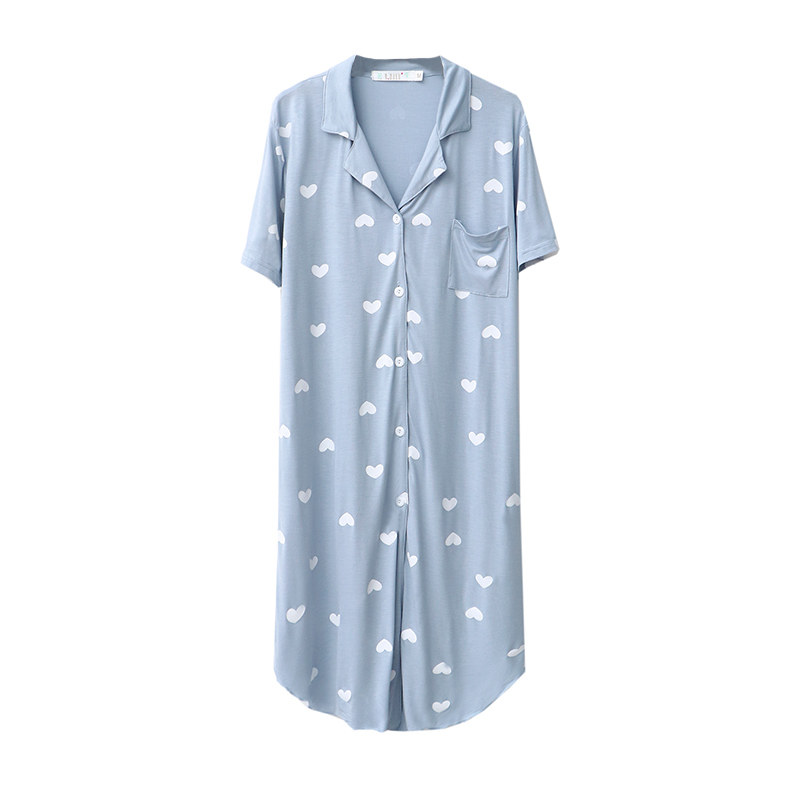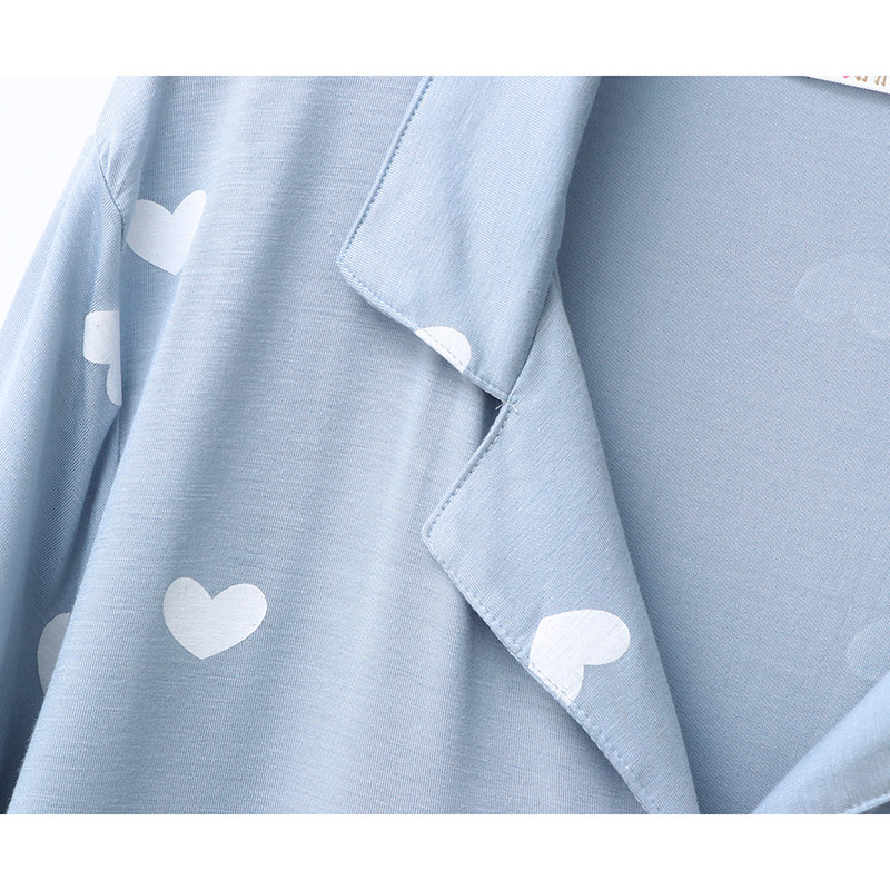 2020 women's summer nightdress casual cardigan lapel modal dress stretch peach heart print home skirt pajamas