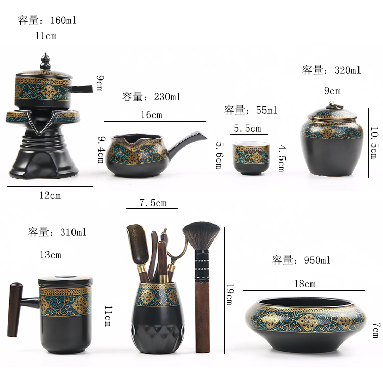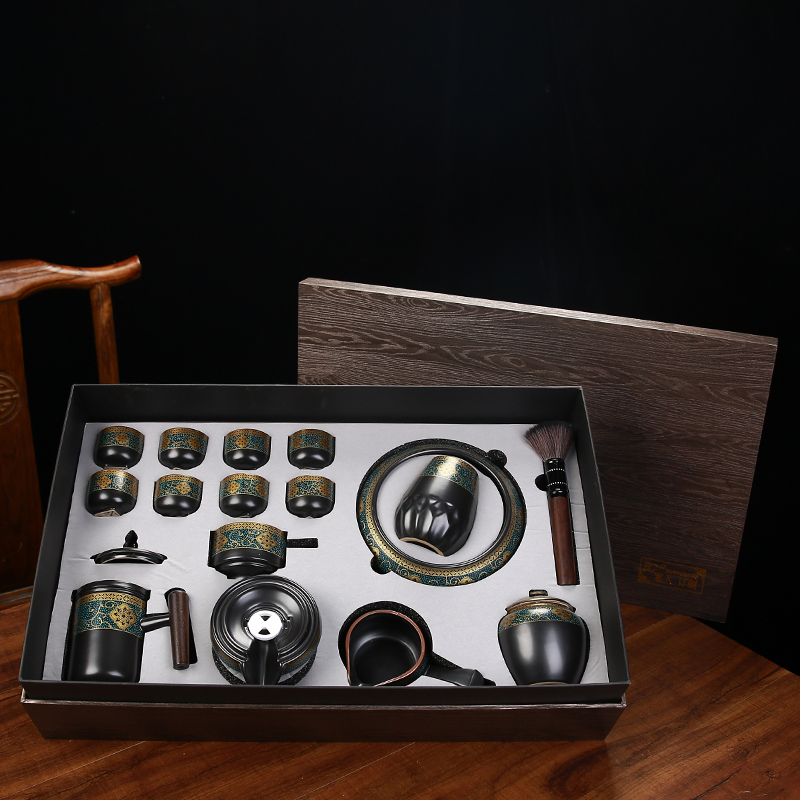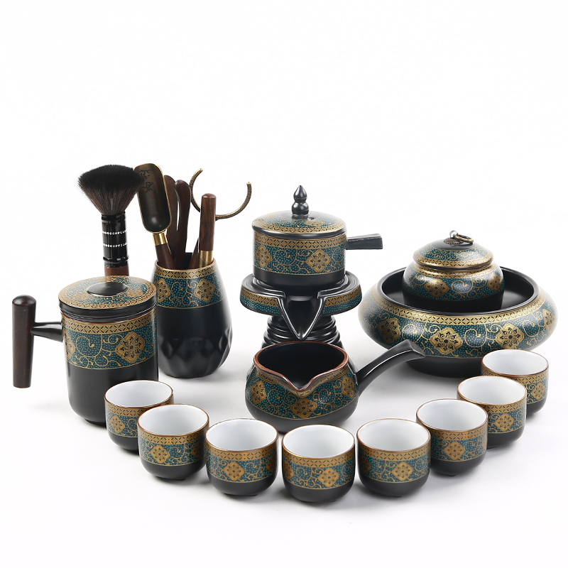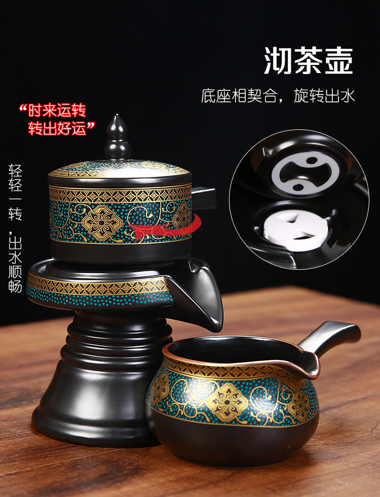 New stone mill teapot semi-automatic tea set lazy brewing tea set home simple ceramic kung fu tea cup set