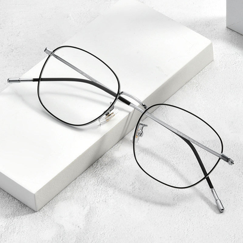 Anti-Blue Light Radiation Myopia Care Eyewear Glasses Female Full Frame Super Light Pure Titanium Glasses Flat Light Discoloration With Degrees Glasses Man