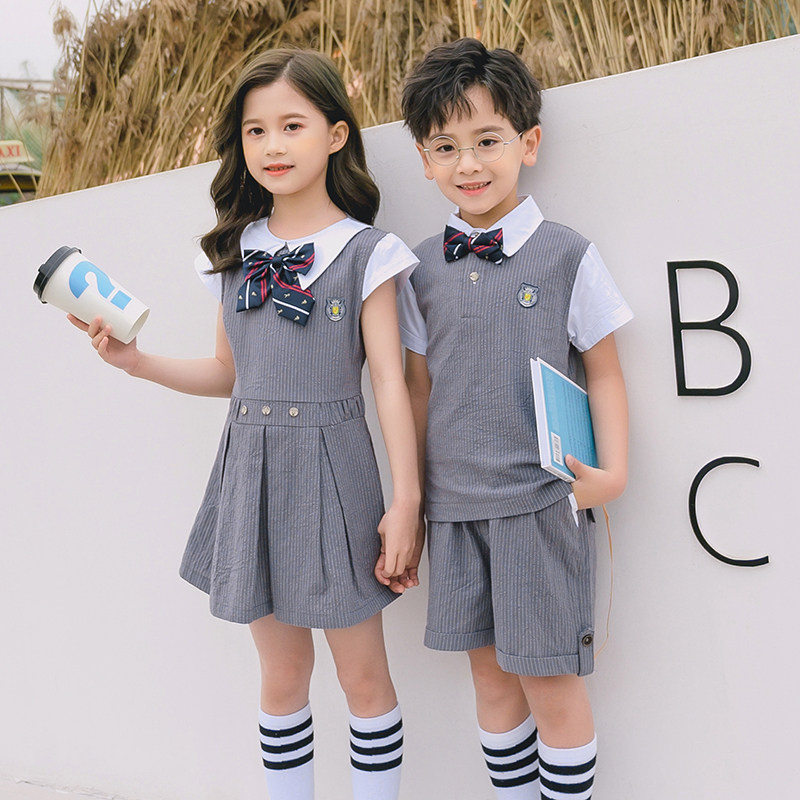 2020 new kindergarten uniforms summer suits for boys and girls class uniforms British style school uniforms for primary school students
