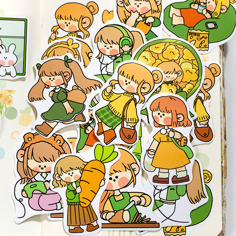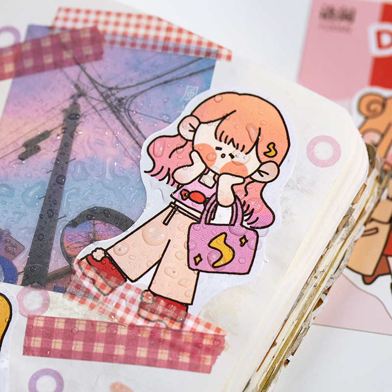 Salt cartoon cute girl character bean daily waterproof hand account sticker bag mobile phone Protective case decoration sticker