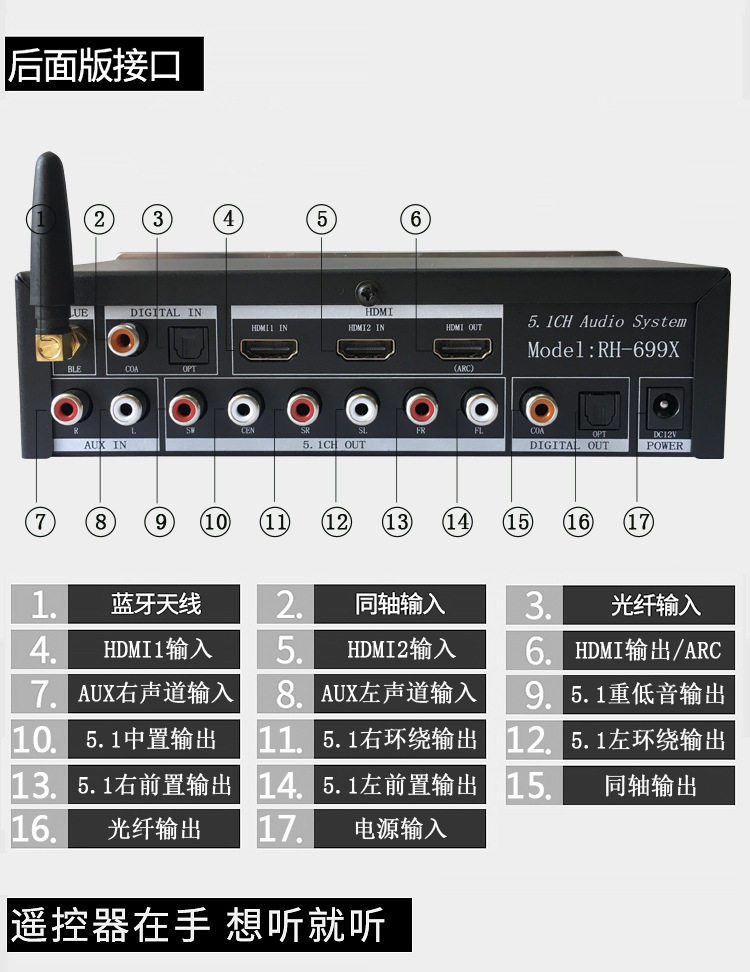 AC3 Dolby DTS Bluetooth U Disc Coaxis HDMI to 5 1 channel audio decoder precursor household surrounding