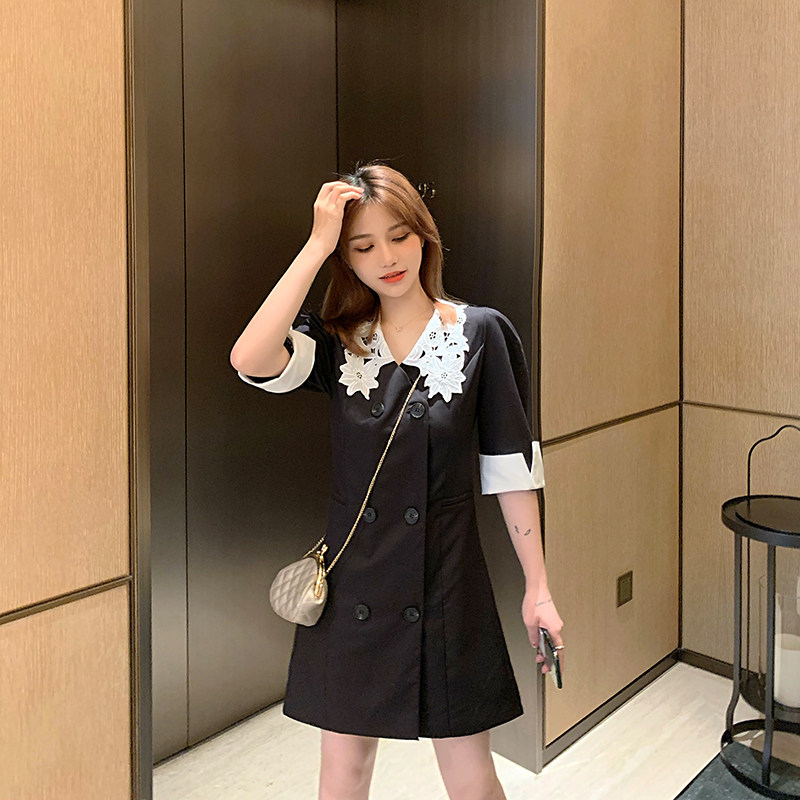 Large size Female dress Fat mm Retro gas light Remain body Lace Short Sleeve Ocean Dress Woman summer close-up Lean Bag Hip Skirt