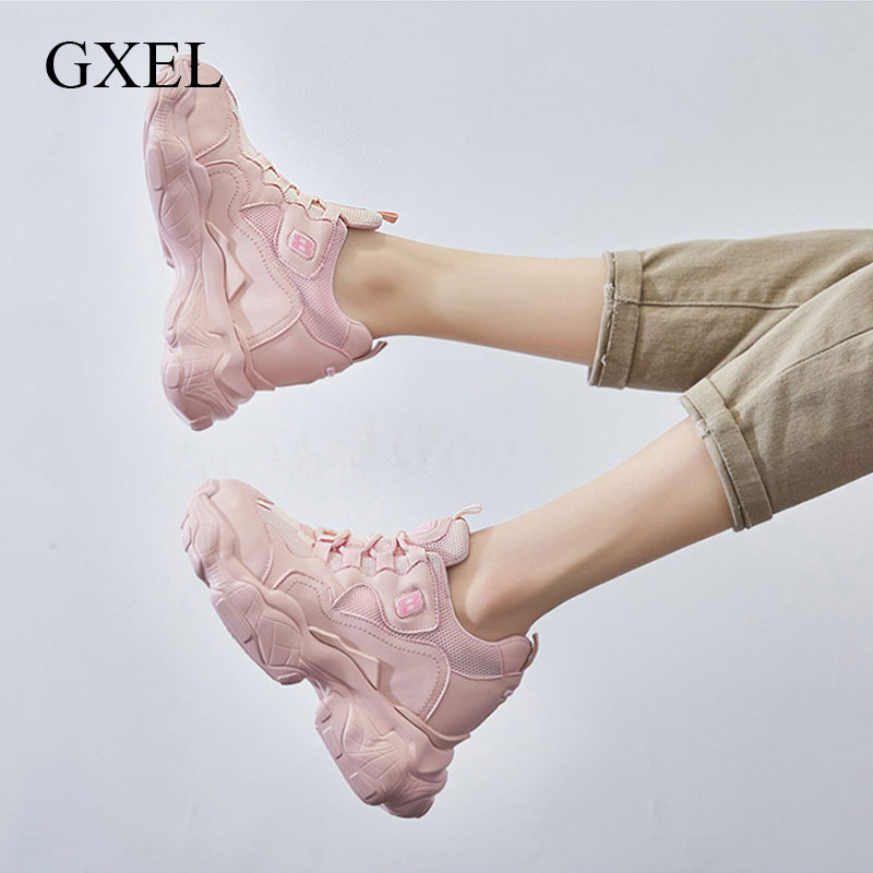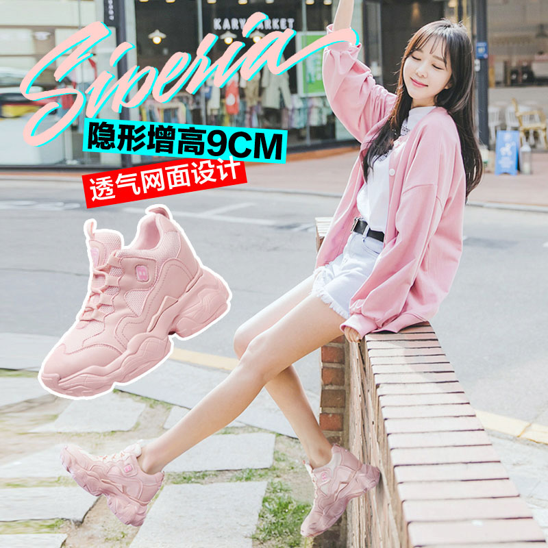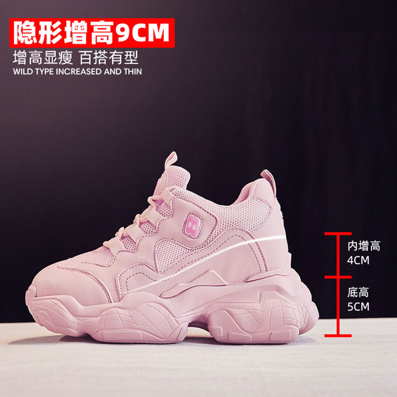 Invisible Inside Heightening Older Daddy Shoes Women Ins Tide 2021 Spring New Breathable THIN THICK BOTTOM PINK MESH FACE SHOES
